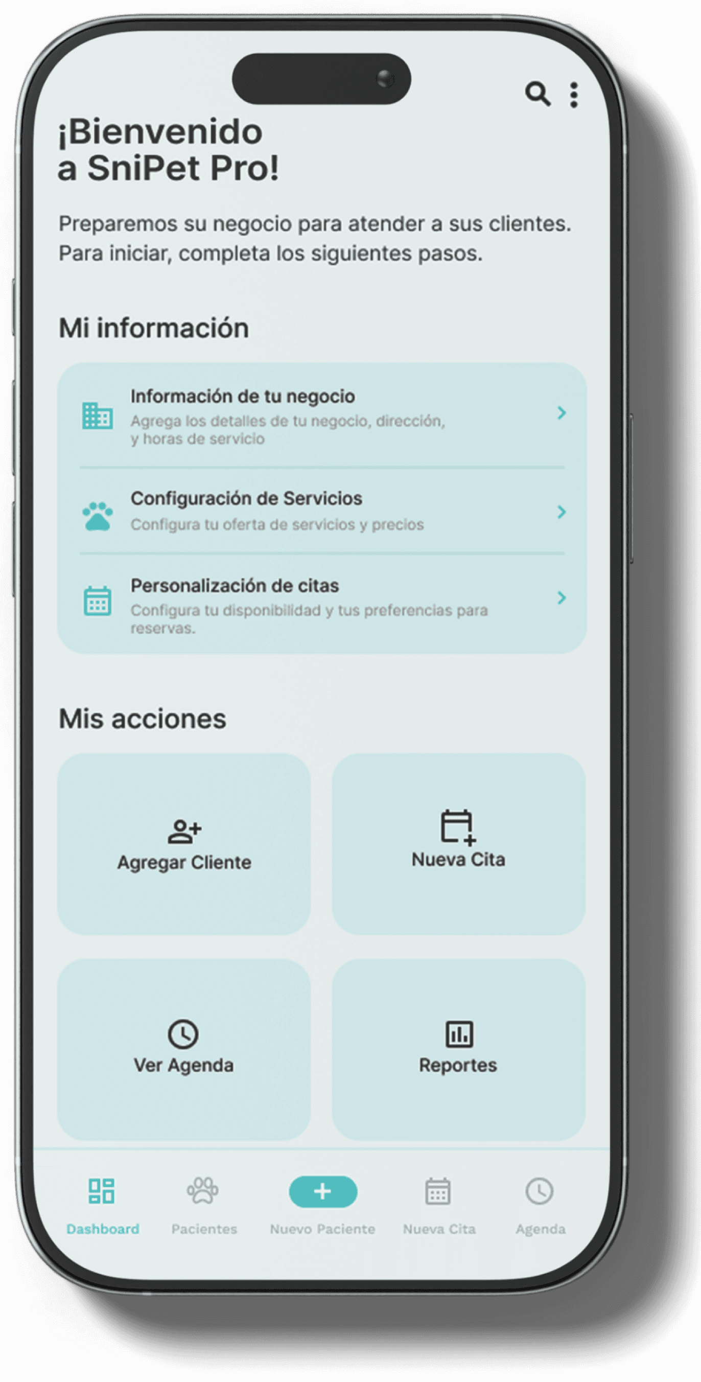 SniPet fue creado para que todos los servicios que ofreces dentro de tu clínica, pet resort o estética existan en un mismo lugar.